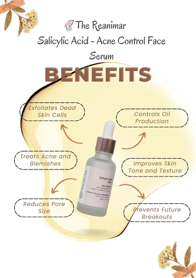 Salicylic acid is a beta-hydroxy acid (BHA) that has proven to be a highly effective ingredient in skincare, especially in the form of acne control face serums. This potent compound is well-known for its ability to target and treat acne-related issues, making it a popular choice for those dealing with blemishes and breakouts.